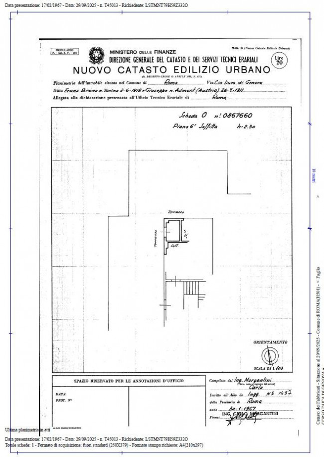Completa la proprietà una soffitta di 2 mq, posta al sesto piano, con ingresso diretto da Corso Duca di Genova.