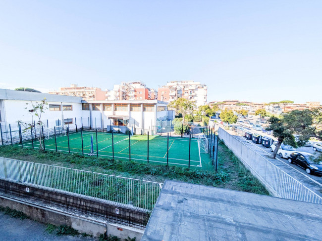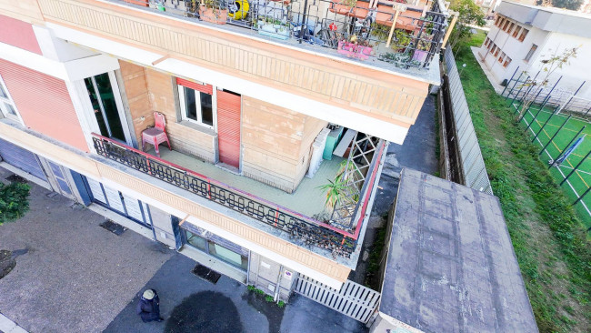 L'abitazione è dotata di un balcone angolare abitabile, con affaccio aperto e una luminosa esposizione che assicura un'ottima ventilazione naturale.
