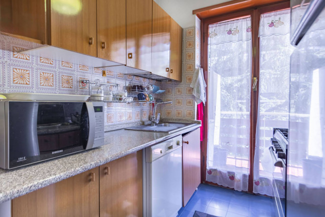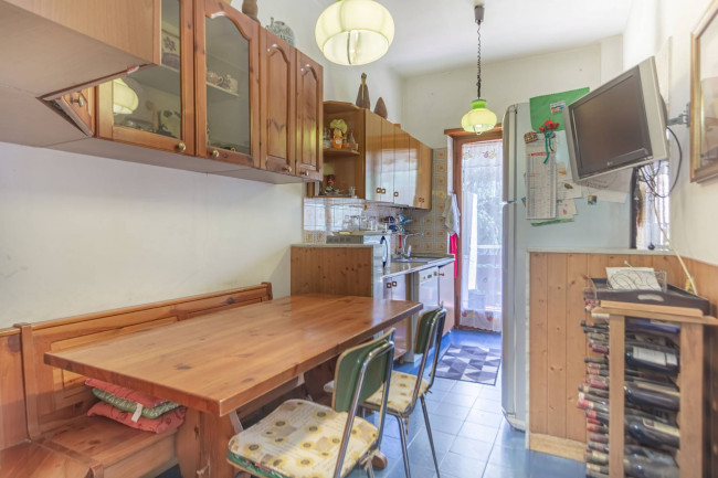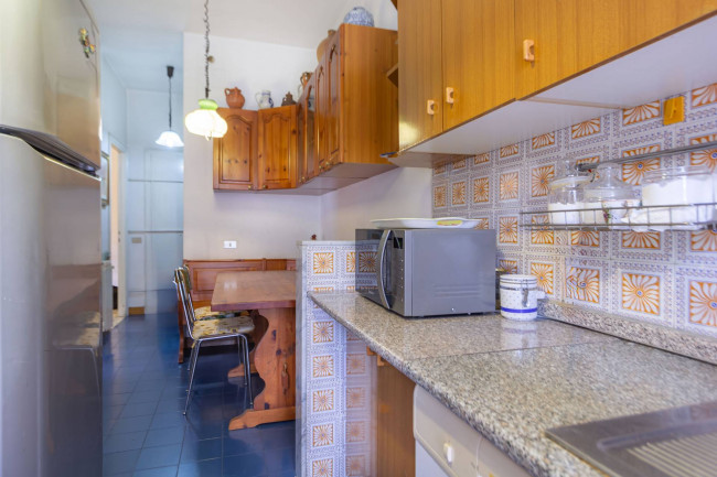 La cucina, di tipo abitabile e provvista di doppio accesso, si apre anch'essa sul balcone, creando continuità e funzionalità tra gli ambienti.