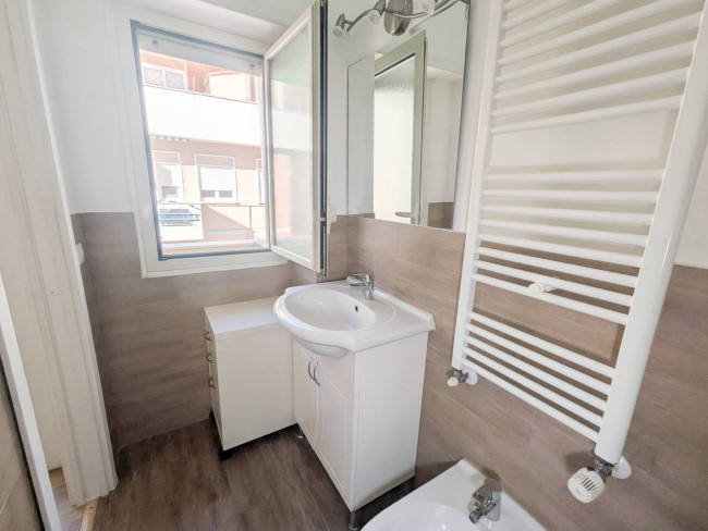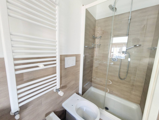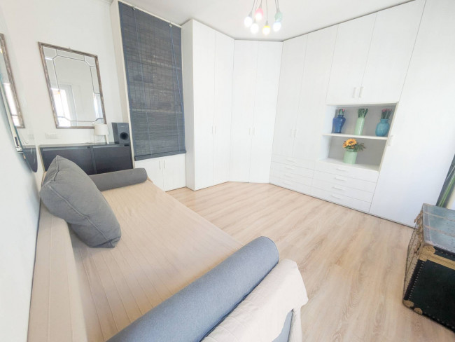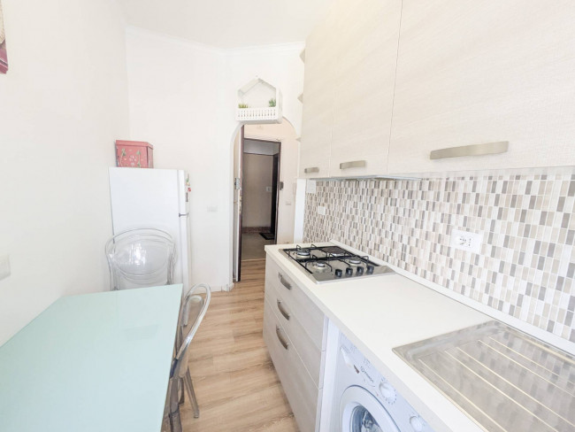 L'ingresso accoglie in un ambiente funzionale che distribuisce gli spazi interni: una camera matrimoniale ampia, una cucina vivibile, un bagno finestrato completo di box doccia e un comodo armadio a muro.