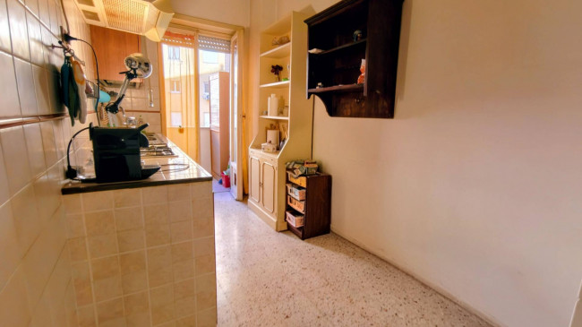 Una cucina abitabile provvista di balcone, da mantenere come tale o da trasformare in una seconda camera da letto.