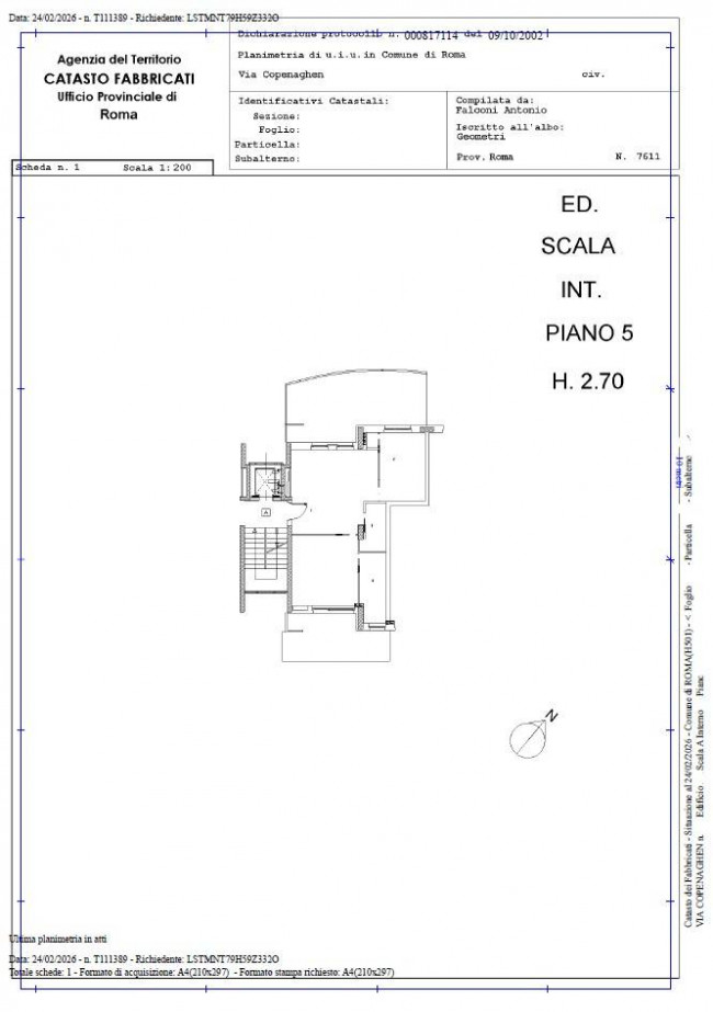 L'appartamento è situato al quinto piano di una palazzina signorile di 7 piani, composto da: