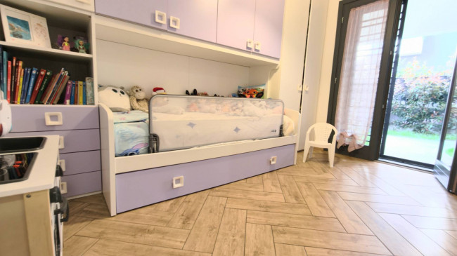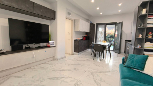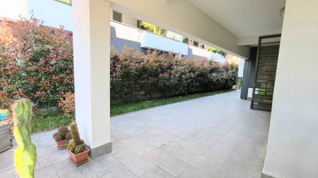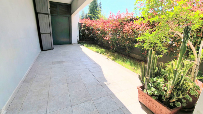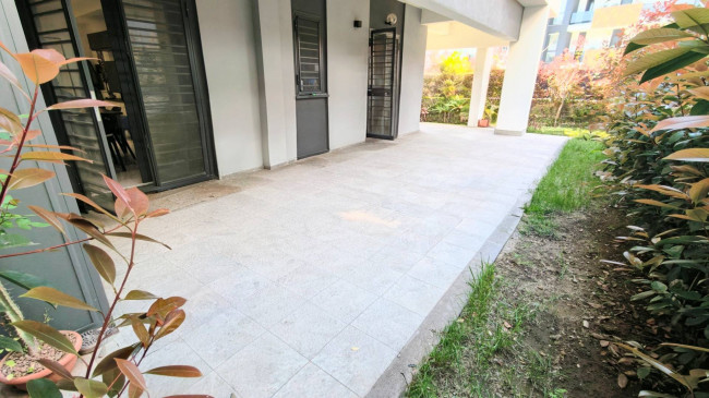 In deliziosa palazzina con generosi spazi esterni da vivere tutto l'anno, posto al piano terra con un ampio giardino in parte pavimentato di 100 mq.
