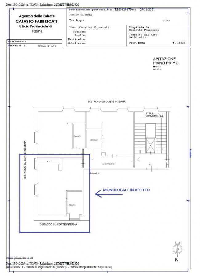 Il MONOLOCALE risulta in perfetto stato di conservazione e viene affittato già arredato; ideale per professionisti o single, è posto al primo piano con ascensore di una palazzina in ottimo stato. Si compone di un unico ambiente con angolo cottura ed un servizio, il tutto in ottimo stato e completamente arredato.